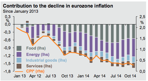 L’infografica tratta da “Guide to the Markets” Europa, edita da JPMorgan AM, evidenzia il contributo dei vari settori alla riduzione dell’inflazione.
