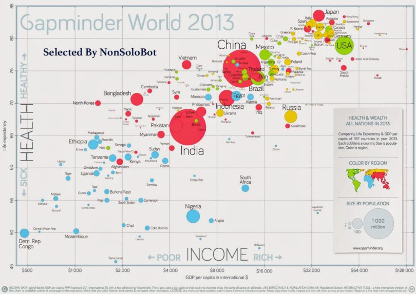 Il mondo è cambiato di nuovo! Ecco gli ultimi numeri per i redditi e durata della vita di tutti i paesi.
