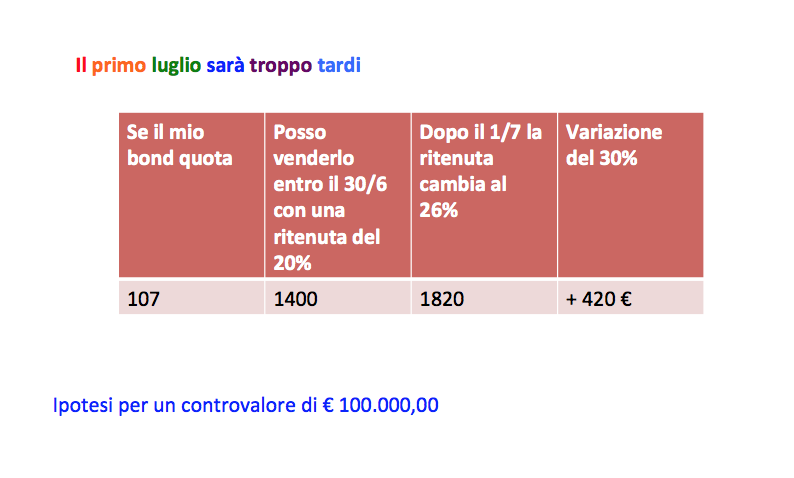 plusvalenza attuale alla ritenuta del 20% ammonta a 1400 €, al 26%, invece,
