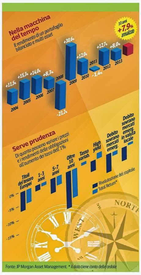 L’importanza della diversificazione negli investimenti 12 Febbraio 201410 Giugno 2018 Alberto Il grafico mostra di quanto possono variare gli investimenti obbligazionari a fronte di un rialzo dei tassi. Fonte: Corriere Economia